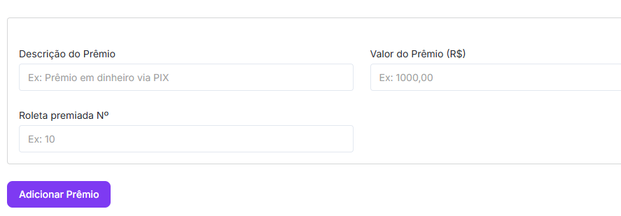 Você pode cadastrar até 5 Roletas Premiadas.